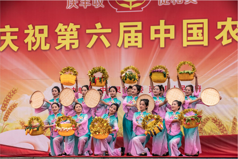 活動(dòng)在開(kāi)場(chǎng)舞《鼓樂(lè)聲聲傳遞家鄉(xiāng)美》中拉開(kāi)序幕,舞蹈《喜樂(lè)鄉(xiāng)村》《踏歌起舞慶和美》《歡天喜地慶豐收》等節(jié)目用飛揚(yáng)的歌舞歡慶豐收,用深情的言語(yǔ)歌頌黨恩,禮贊豐收,為農(nóng)民謳歌、為勞動(dòng)祝福。